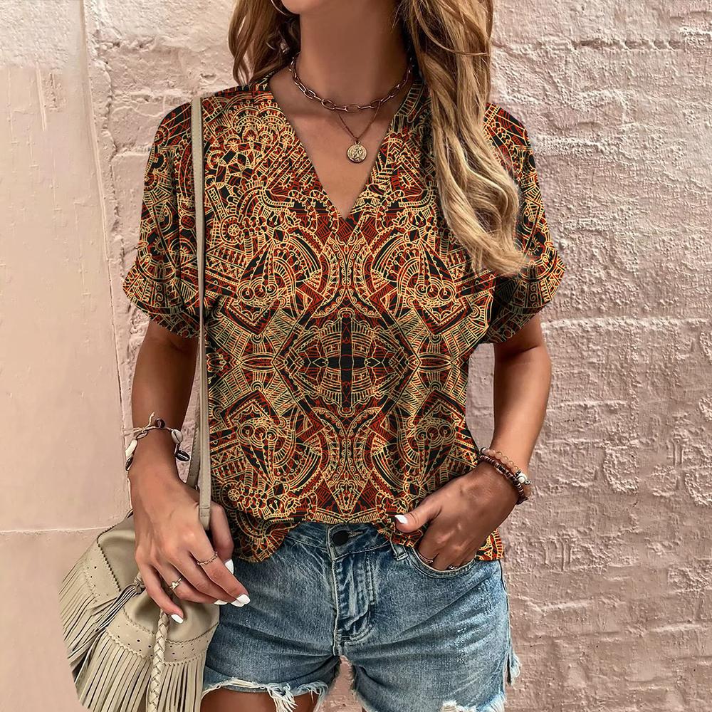 Женская футболка в стиле ретро с цветочным принтом, летняя повседневная женская одежда, блузка с короткими рукавами и v-образным вырезом, одежда в стиле Харадзюку, женская новая уличная одежда — купить товар онлайн с бесплатной доставкой по всему миру!