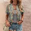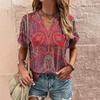 Женская футболка в стиле ретро с цветочным принтом, летняя повседневная женская одежда, блузка с короткими рукавами и v-образным вырезом, одежда в стиле Харадзюку, женская новая уличная одежда