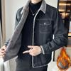 Джинсовая куртка мужская шерпа осень и зима плюс бархат утолщенная теплая хлопковая куртка свободная и красивая корейский стиль модная куртка для пары