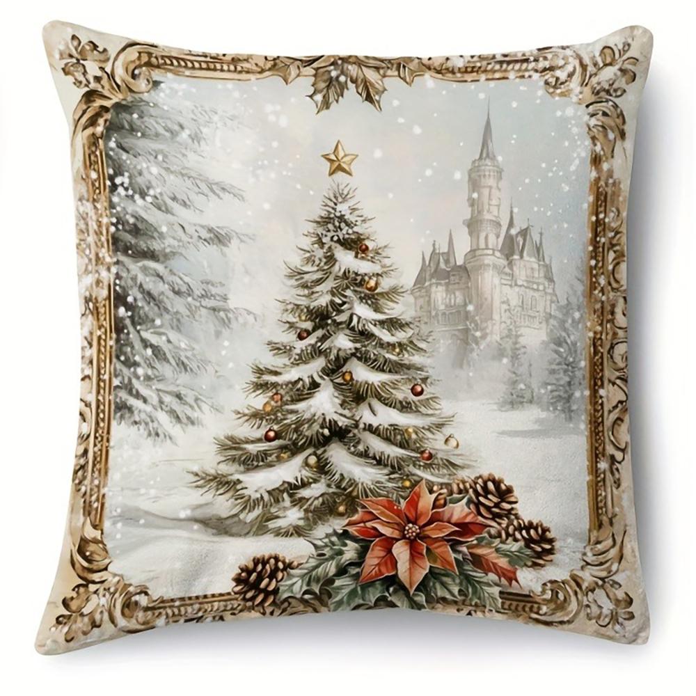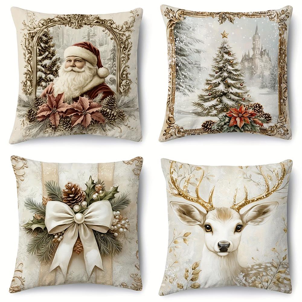 Рождественский декоративный чехол для подушки Санта-Клауса с рисунком оленей и рождественской елки, чехол для дивана для гостиной, украшение для дома