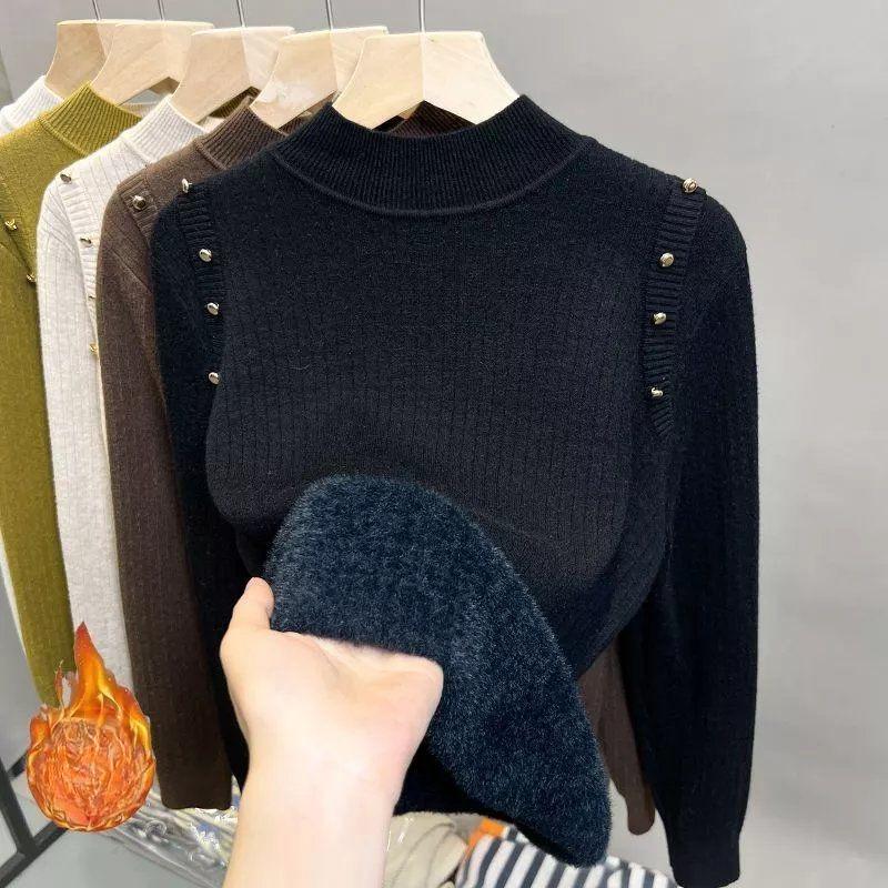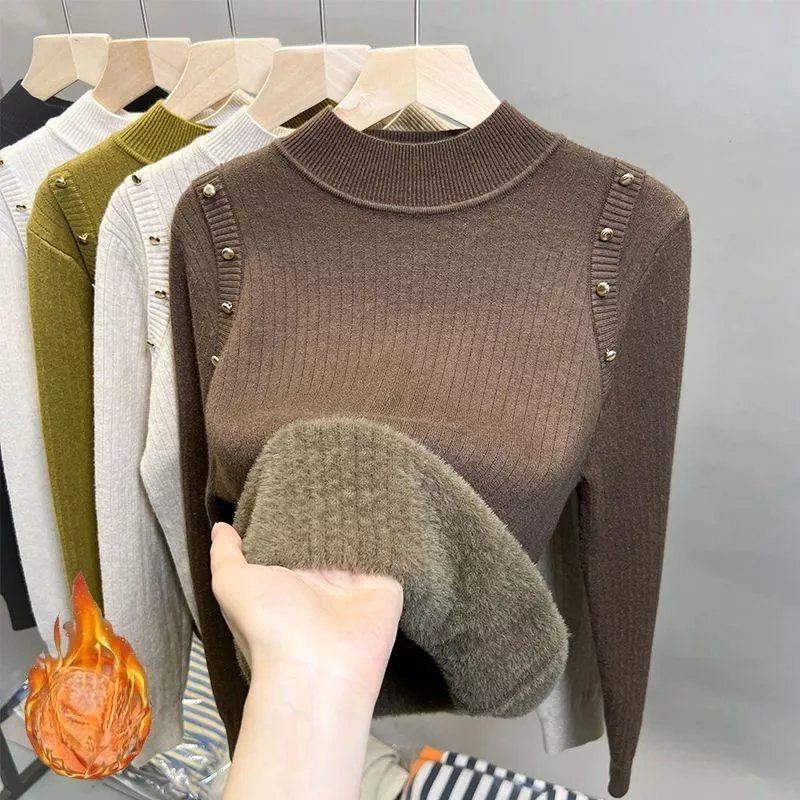 Женский модный полувысокий воротник плюшевый свитер осень зима длинный рукав толстые теплые пуловеры повседневные однотонные флисовые топы