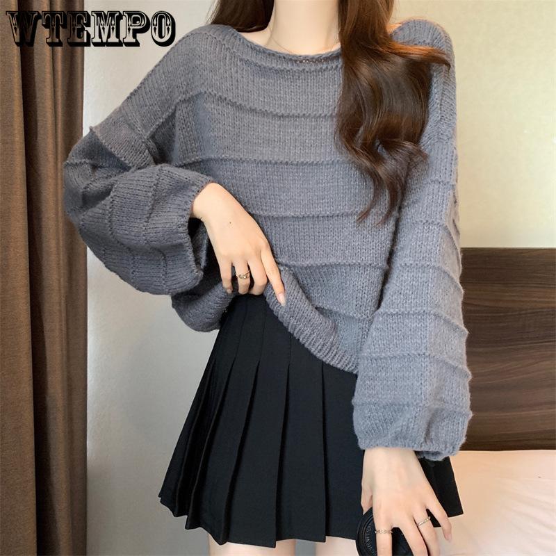 Женский свитер-пуловер, свободный, корейский стиль, рукава с бисером, короткий, с круглым вырезом, подкладка, трикотаж, весна и осень — купить товар онлайн с бесплатной доставкой по всему миру!