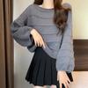 Женский свитер-пуловер, свободный, корейский стиль, рукава с бисером, короткий, с круглым вырезом, подкладка, трикотаж, весна и осень