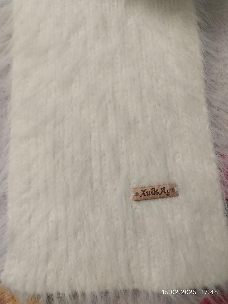 Мягкий и нежный шарфик, понравился. Такой и хотела и ждала для своих таких же штанишек, которые приобрела на Джуме. Очень довольна.