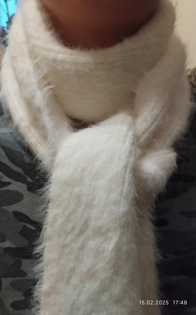 Мягкий, пушистый шарфик, не колючий. Спасибо большое продавцу, рекомендую!