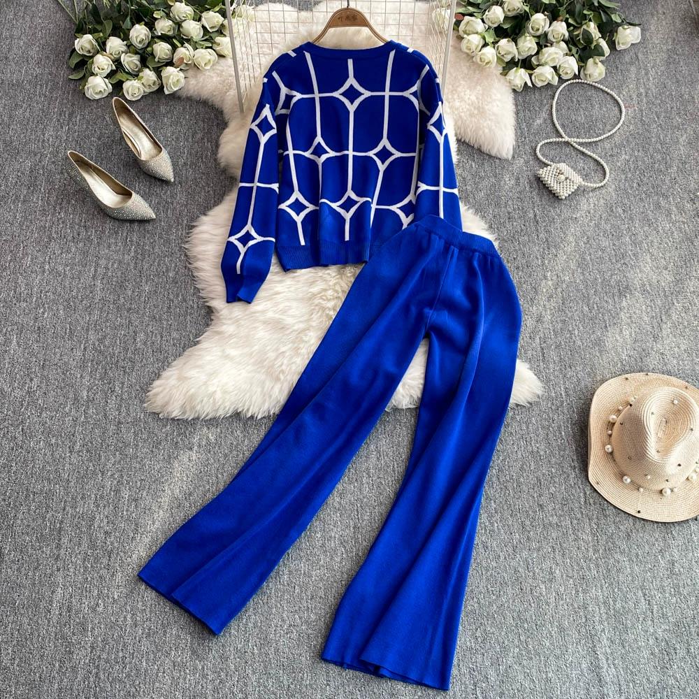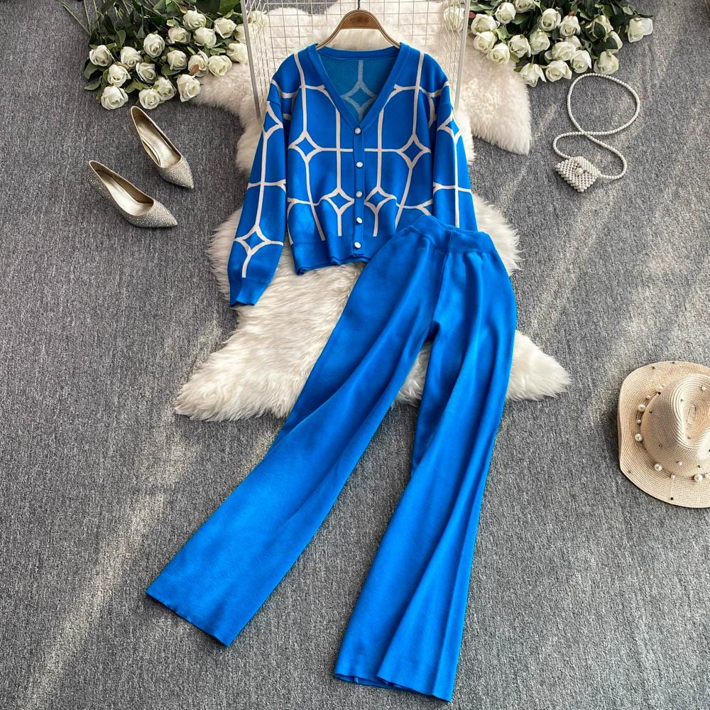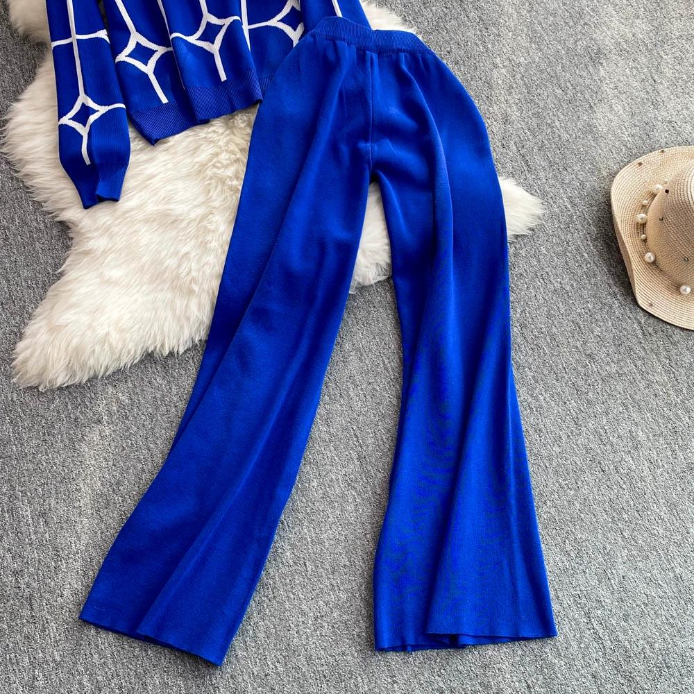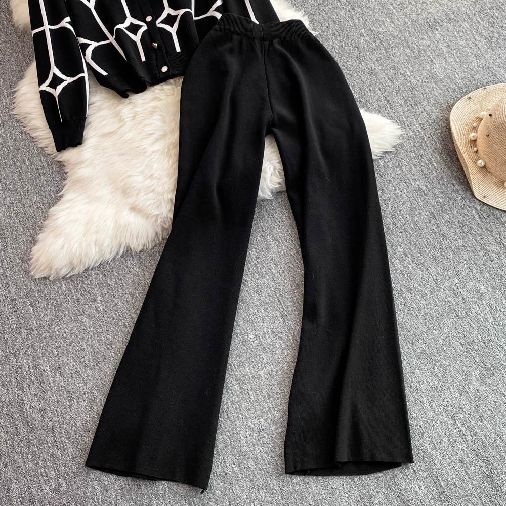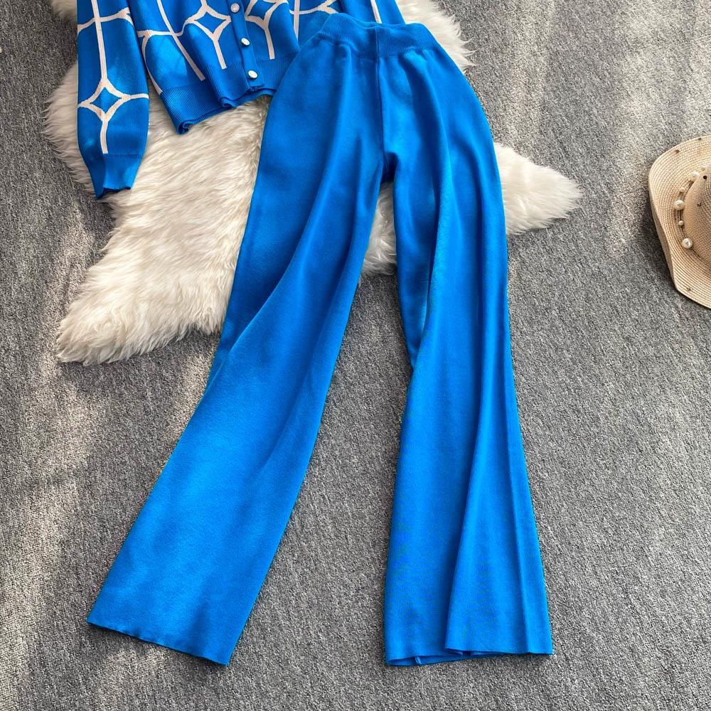 Осенне-зимний дизайнерский трикотажный свитер с брюками, комплект из двух предметов, женская куртка с V-образным вырезом, пальто и брюки длиной до щиколотки, спортивный костюм