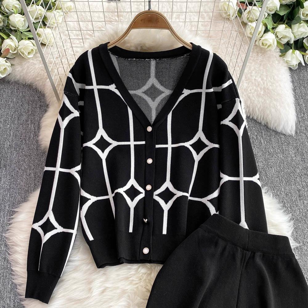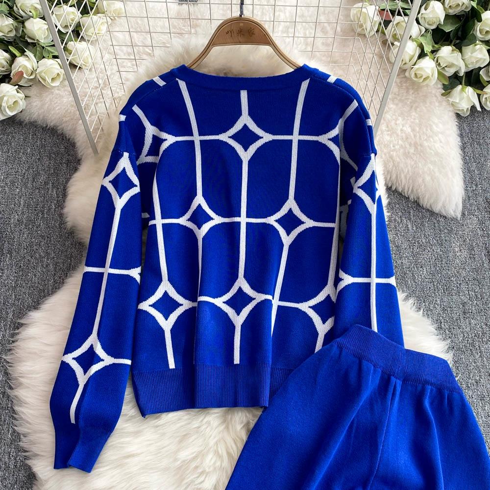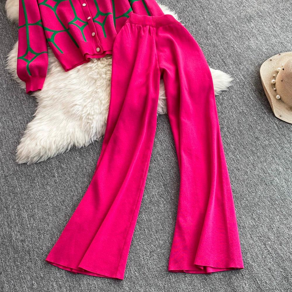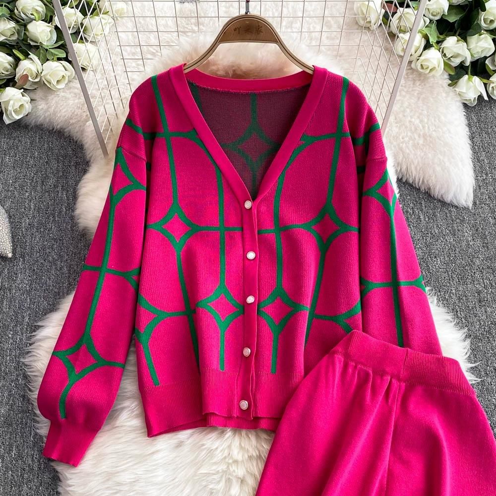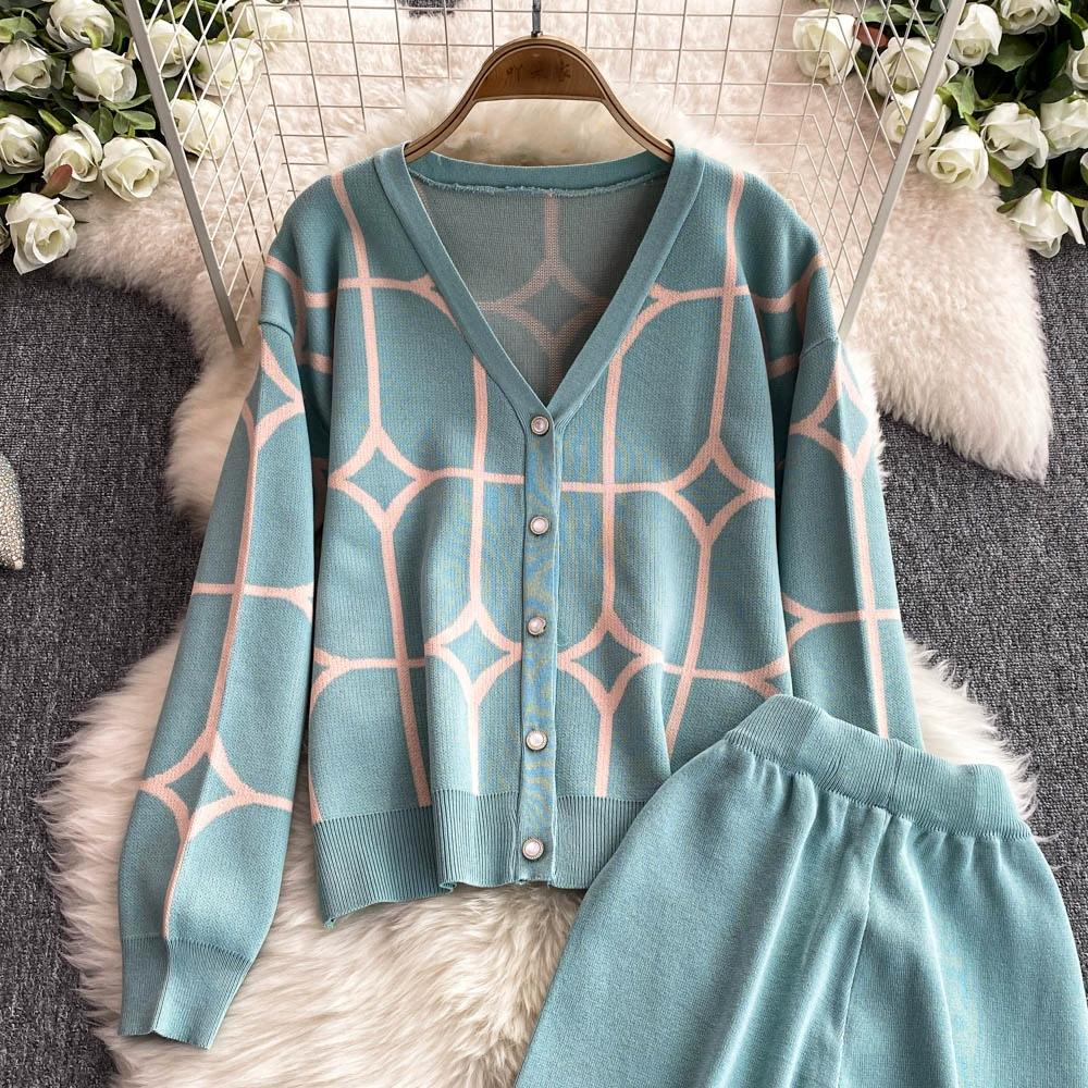 Осенне-зимний дизайнерский трикотажный свитер с брюками, комплект из двух предметов, женская куртка с V-образным вырезом, пальто и брюки длиной до щиколотки, спортивный костюм