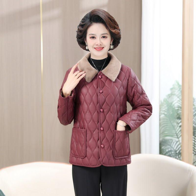 Осень-зима для женщин среднего возраста плюс бархатное теплое пальто средней длины свободного покроя из кожи кожаная куртка для мам повседневная куртка