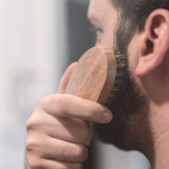 Кисть для бороды из щетины кабана: Ощутите роскошь нашей щетки для бороды, изготовленной из натуральной щетины кабана.. Эта щетка бережно воздействует на кожу, устраняя зуд и дискомфорт, позволяя вам без усилий укладывать и разглаживать бороду, придавая ей изысканный и элегантный вид.
