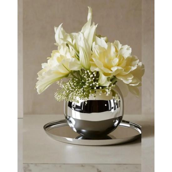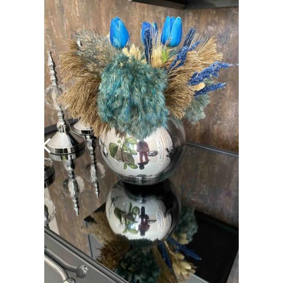 Ваза Paşabahçe, декоративная зеркальная стеклянная блестящая ваза серебристого цвета, стильная