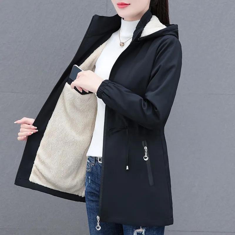 Женский однотонный простой пригородный тренчкот на весну и осень с длинными рукавами, утепленное пальто с подкладкой