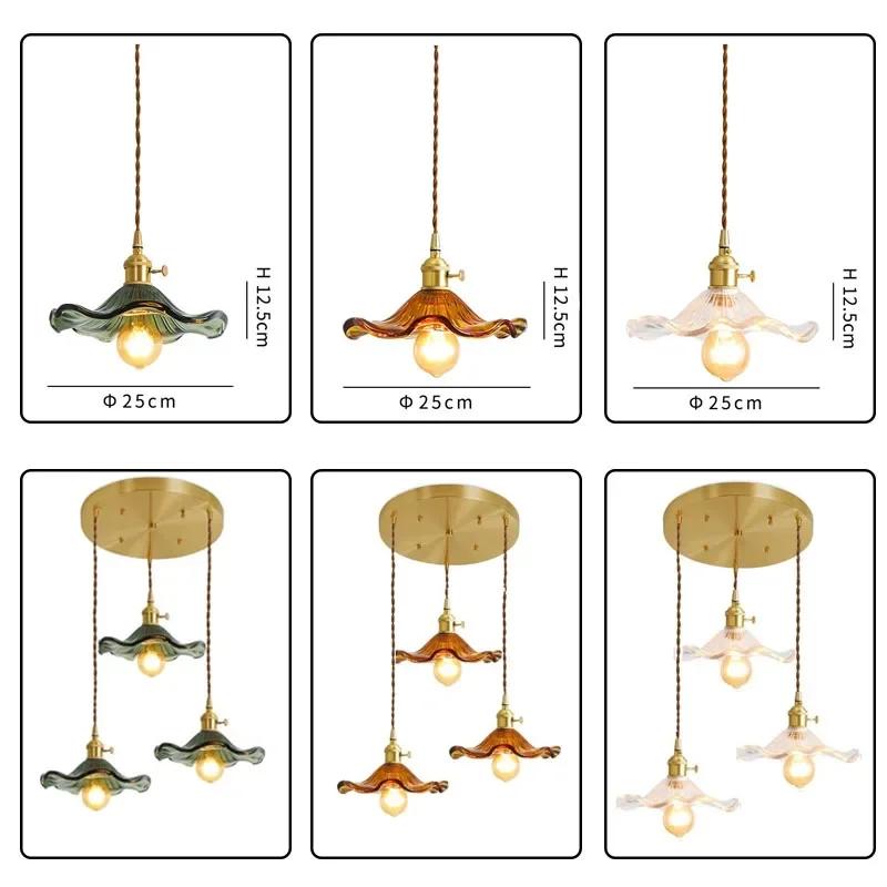 Светодиодный подвесной светильник Nordic Sederhana Perlengkapan Kamar Tidur Ruang Tamu Bar Berwarna-warni Kaca Lam Gantung Copper Lantern