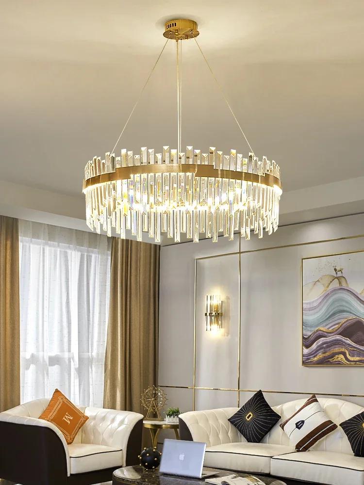 Современная роскошная хрустальная люстра полного спектра, скандинавское золото, простая круглая люстра для гостиной, спальни, столовой, освещение