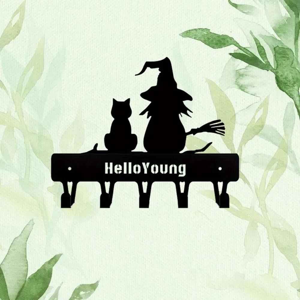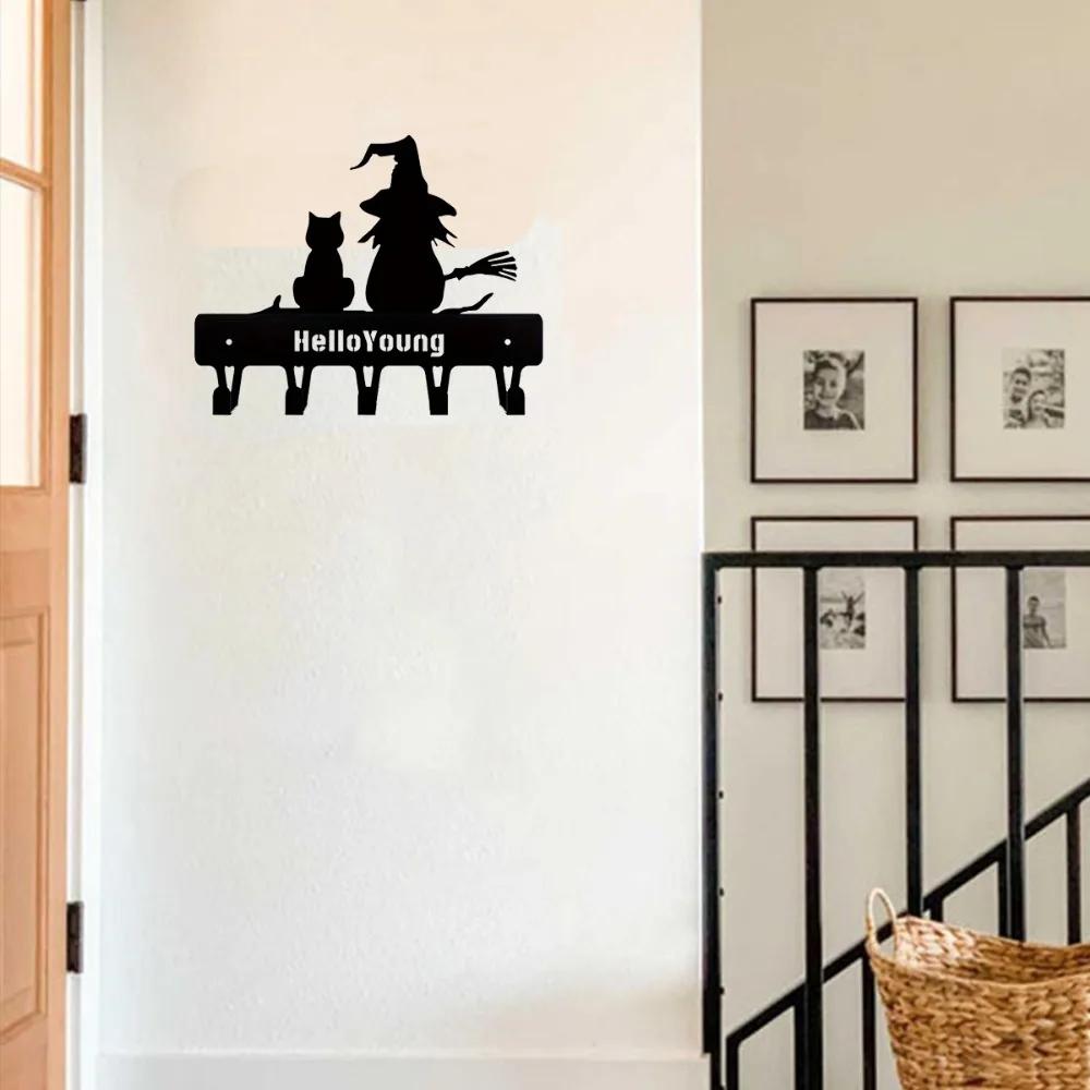 1 шт. Металлический держатель для ключей «Ведьма и кошка», настенный крючок, декоративные аксессуары для настенного монтажа, брелок