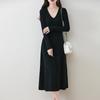 Женское платье-свитер 100% шерсть MODERN NEW SAGA V-образный вырез трикотажный длинный пуловер зимние джемперы шерстяное длинное платье женское