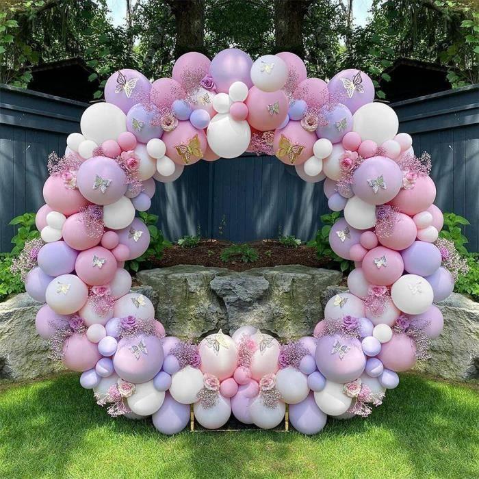 Ballon Guirlande - Décoration de Fête - 131pcs - Rose Violet Blanc - Mariage Anniversaire Nouvel An