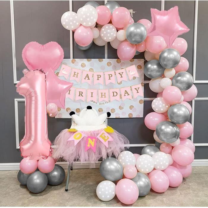 Decoration de Fête Anniversaire Fille 1 an Rose Guirlande Ballon Anniversaire Bannière Joyeux Anniversaire Deco Arche Ballon Rose