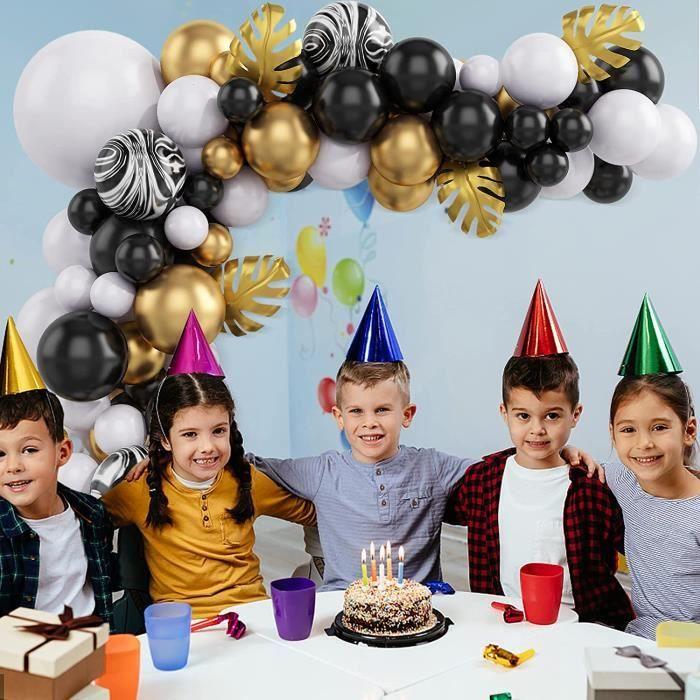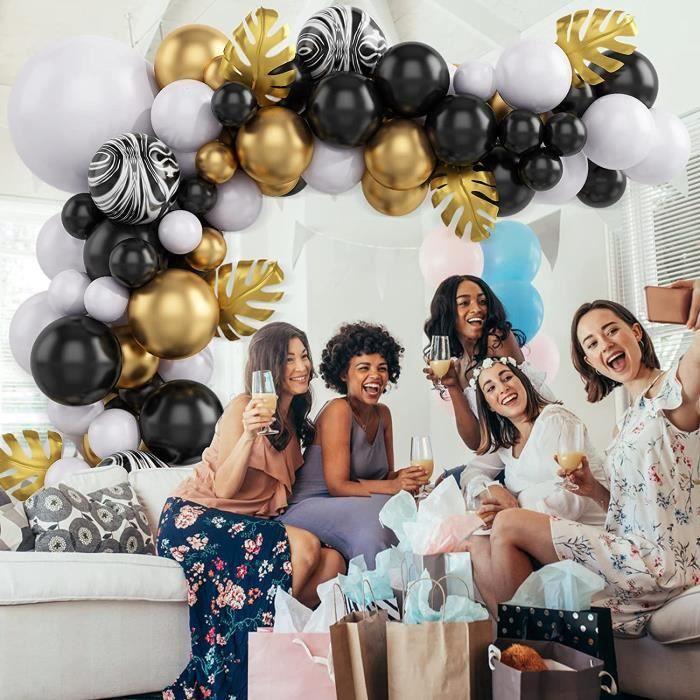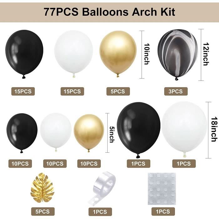 Kit Arche Guirlande Ballons, Noir Or Blanc Agate Ballons en Latex, Kit Arche Ballon Anniversaire aux Feuilles de Palmier Dorées[96]