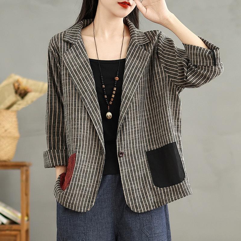 DIMANAF 2024 Новое женское пальто в полоску, льняные тонкие винтажные куртки, с длинным рукавом, весеннее свободное пальто на пуговицах — купить товар онлайн с бесплатной доставкой по всему миру!
