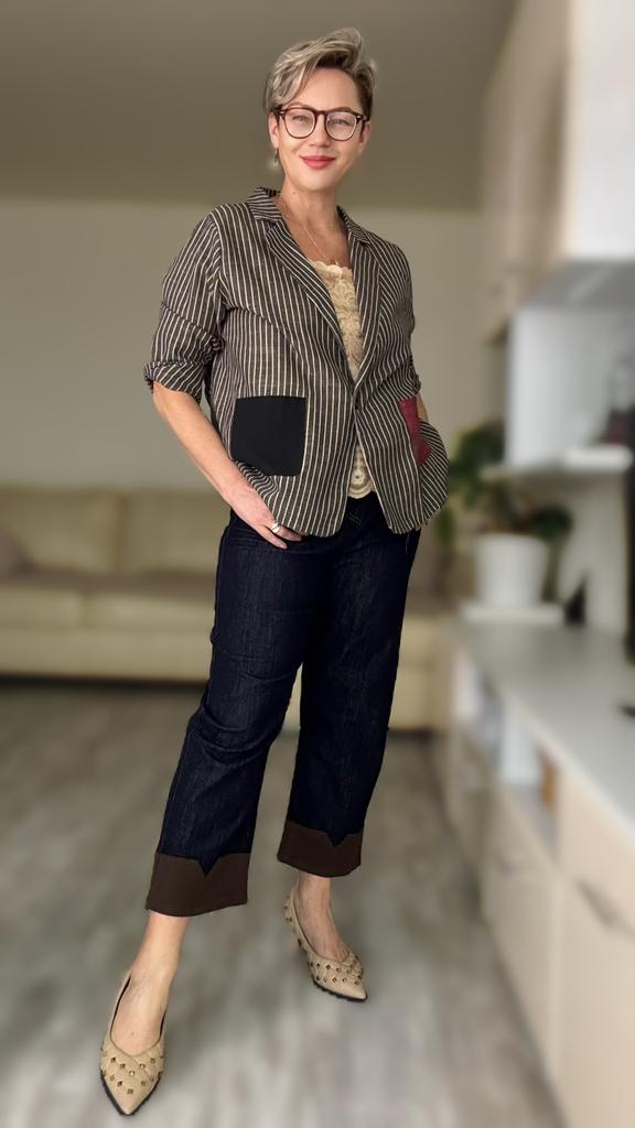 Шикарный пиджачок, я в восторге! На рост 168 см и размер 50 выбрала 3XL - точно как на фото. Рукав для полноценного коротковат, для 3/4 длинноват, но если подвернуть - то что надо. И пуговицу перешила, а то низ слишком свободный был, но это дело вкуса. В общем я довольна. Спасибо.