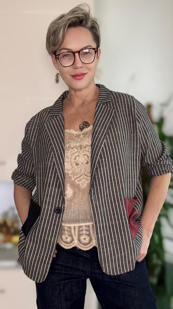Летний дамский пиджак ✔️Размеры М- 3XL. Мои параметры : 167, 98-85-100. По размеру отлично, подойдёт на параметры больше и меньше моих ✔️Фасон: Силуэт прямой На спинке внизу разрез Без подкладки Рукав три четверти Два цветных накладных кармана Выточек нет ✔️Ткань: Хлопок, не тянется, не электризуется, не просвечивает Карманы из полиэстера ✔️Пошив фабричный 📐Замеры: Плечи 44 Длина рукава от горловины 61 Длина рукава 49 Ширина рукава в предплечье 19 ОГ подмышками 124 ОТ 120 ОБ 120 Длина 65