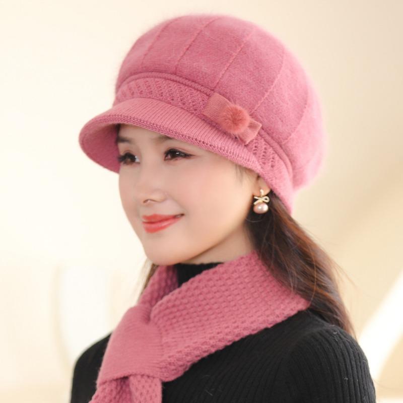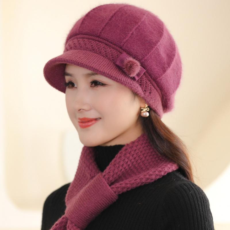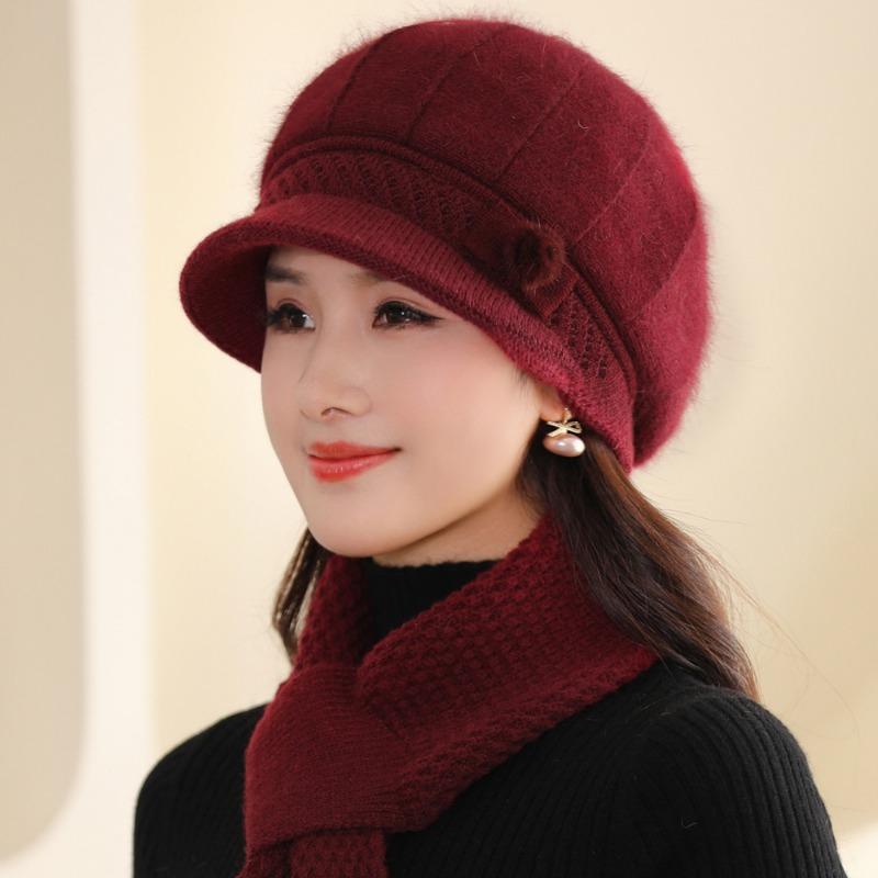 Шапка для матери среднего возраста, женская зимняя бархатная теплая шерстяная шапка для пожилых людей среднего возраста, бабушки, бабушки, хлопковая шапка, шарф для пожилых людей