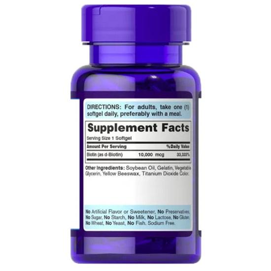 Биотин 10 000 мкг, Puritan's Pride — это витамин, который иногда называют витамином H или витамином B7.. Биотин широко известен своей важностью для клеточного развития и его помощью в метаболизме жирных кислот, углеводов, глюкозы и аминокислот.. Биотин также является очень важным питательным веществом для здоровья волос, кожи и ногтей.