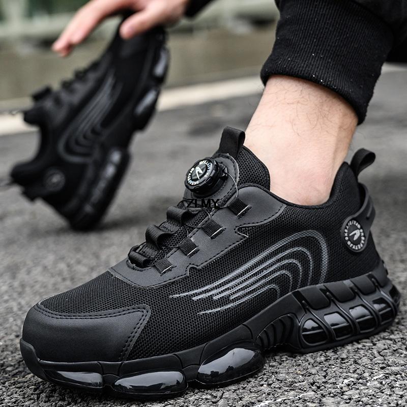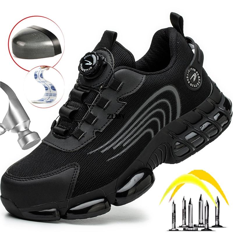 Мужские защитные кроссовки с вращающейся кнопкой, стальным подноском, рабочие кроссовки, неубиваемые ботинки, устойчивые к проколам рабочие ботинки, мужские ботинки с воздушной подушкой