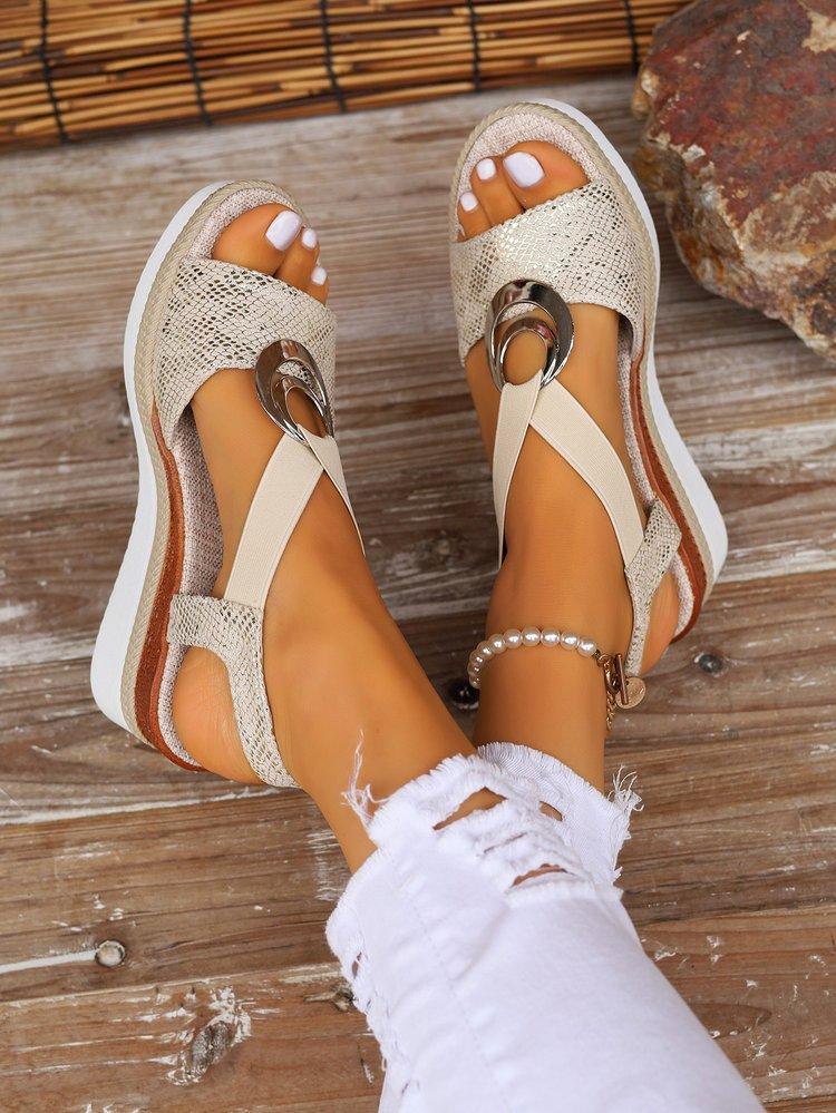 Женские босоножки на танкетке Летние босоножки на платформе со змеиным принтом Гладиаторские туфли Женские удобные повседневные босоножки на среднем каблуке
