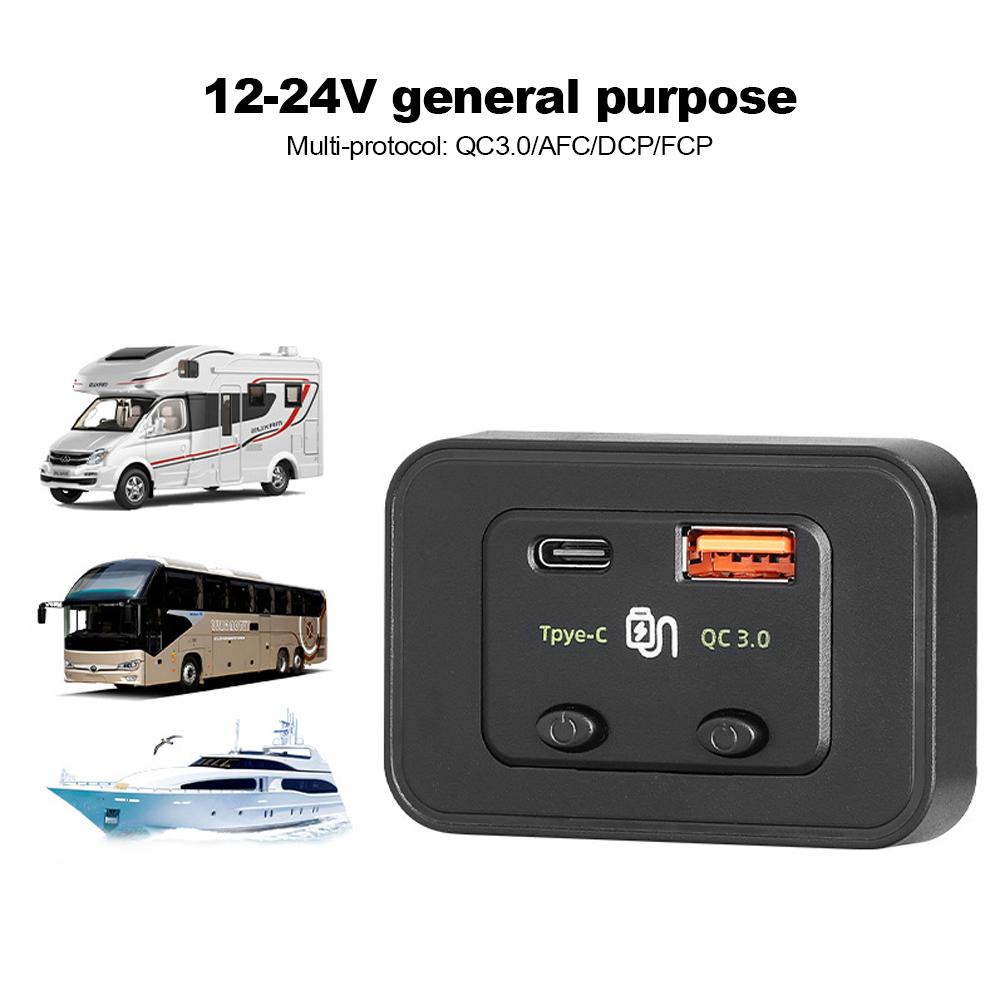 12 В/24 В автомобильное быстрое зарядное устройство Type C + QC3.0 USB A PortLED Light Phone Charger Auto Adapter для автофургонов, автодомов, домов, кемперов, караванов