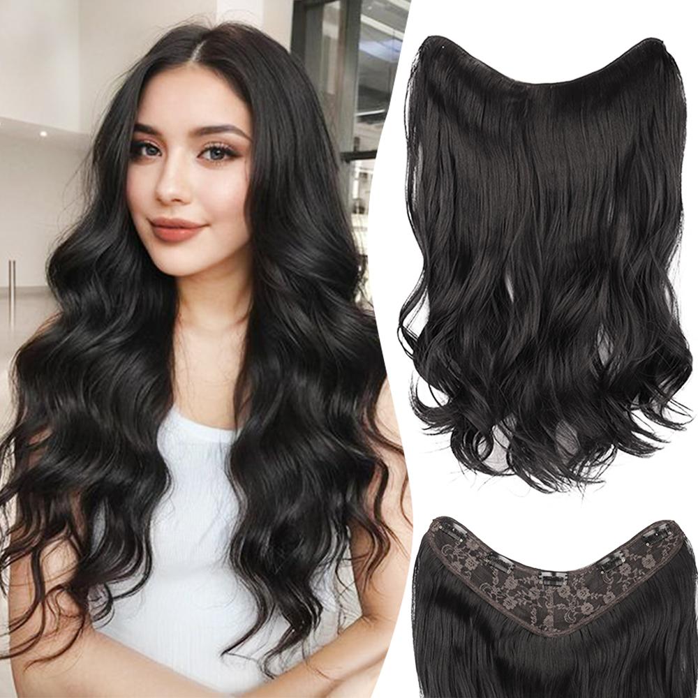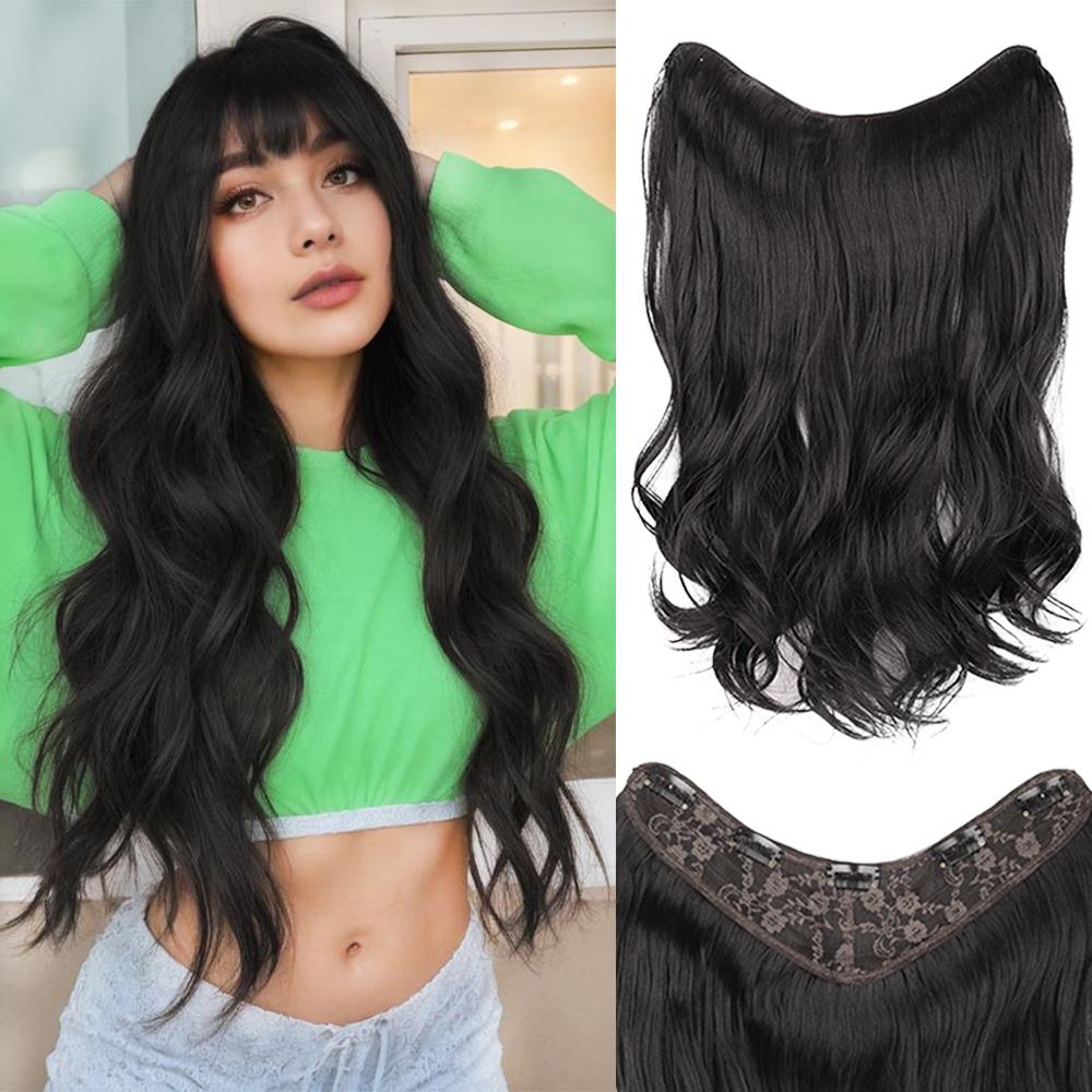 Синтетический длинный волнистый полный парик V-образной формы с заколками для наращивания волос, 5 зажимов, натуральный густые волосы