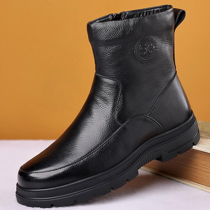 Мужские зимние ботинки из натуральной коровьей кожи, теплые, нескользящие, зимние ботинки из натуральной кожи, брендовая хлопковая обувь для мужчин — купить товар онлайн с бесплатной доставкой по всему миру!