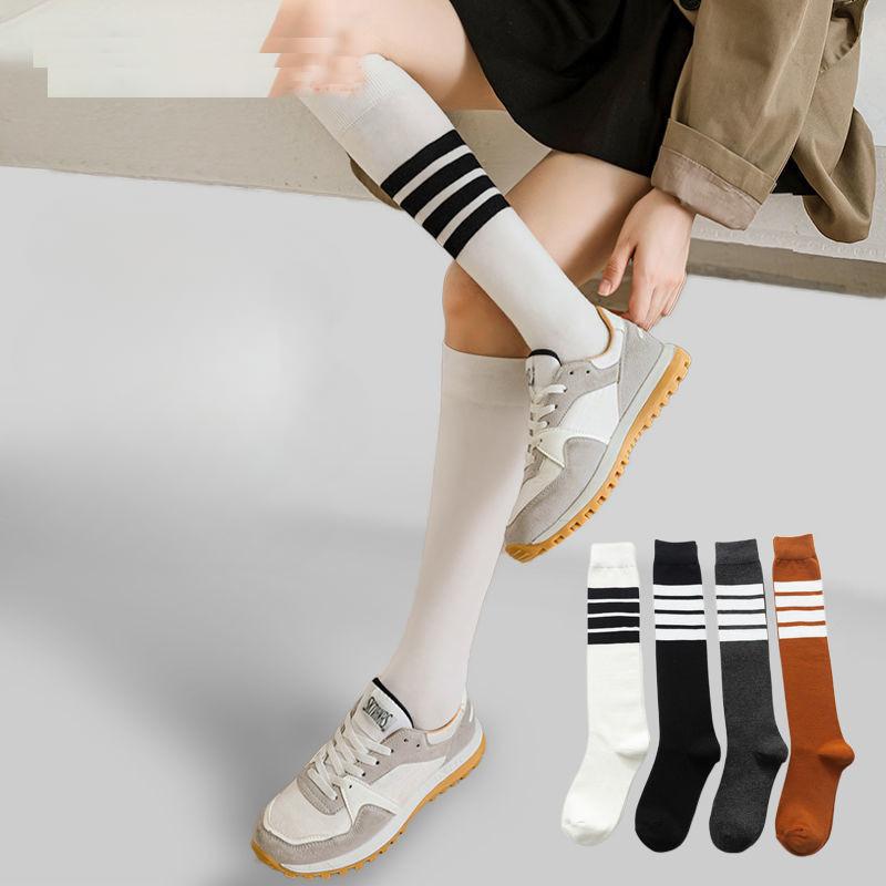 Носки для йоги и голени, спортивные носки для бега и фитнеса, асимметричные высокие носки, женские носки в стиле колледжа с четырьмя полосками