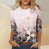 Женские повседневные летние топы с круглым вырезом и принтом, футболка с рукавом три четверти и круглым вырезом, блузка с цветочным принтом и разрезом по бокам, туника