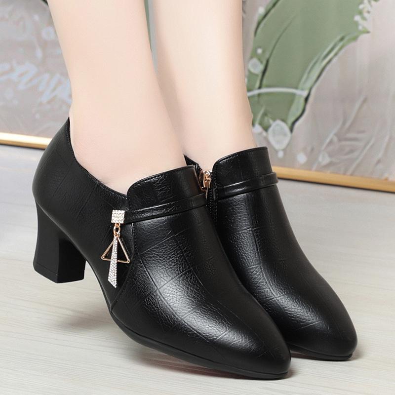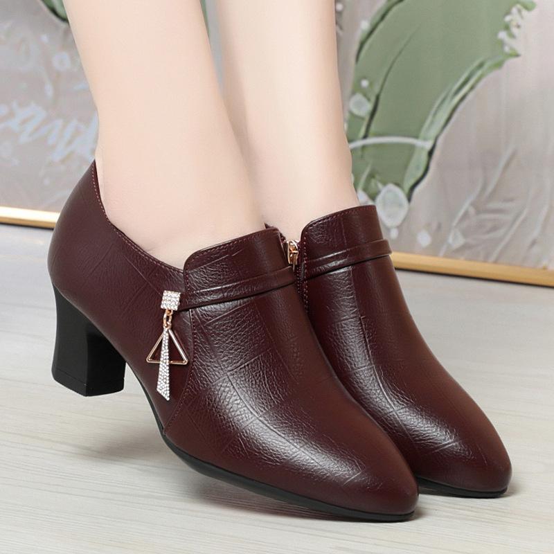 Модные элегантные туфли из мягкой кожи с глубоким ртом, женские туфли-лодочки на платформе, весна 2024 г., туфли на среднем каблуке для офиса, модель для мам, противоскользящие
