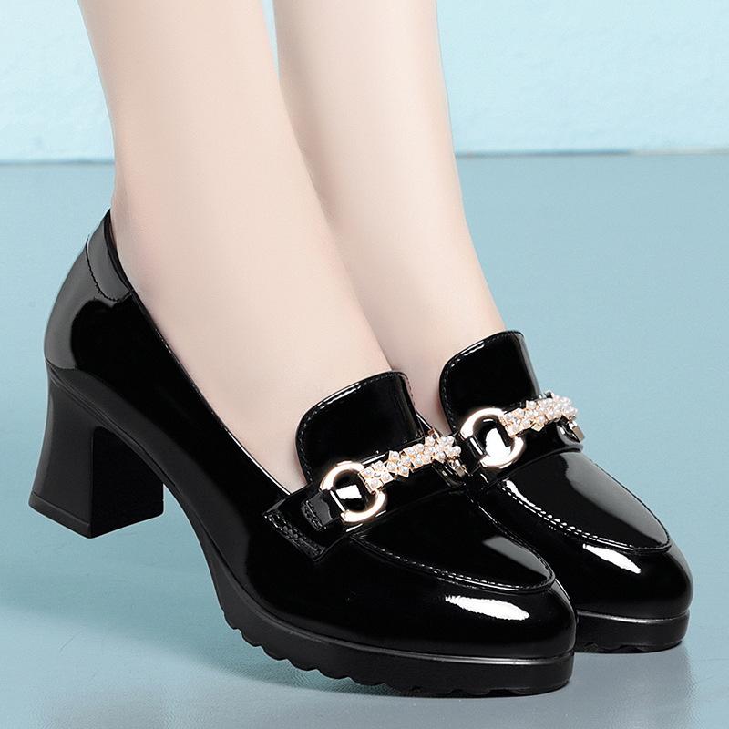 Модные весенние туфли на квадратном каблуке с металлической цепочкой, женские мягкие кожаные туфли, модные туфли без застежек на толстом каблуке, повседневные туфли Мэри Джейн для офиса и мамы