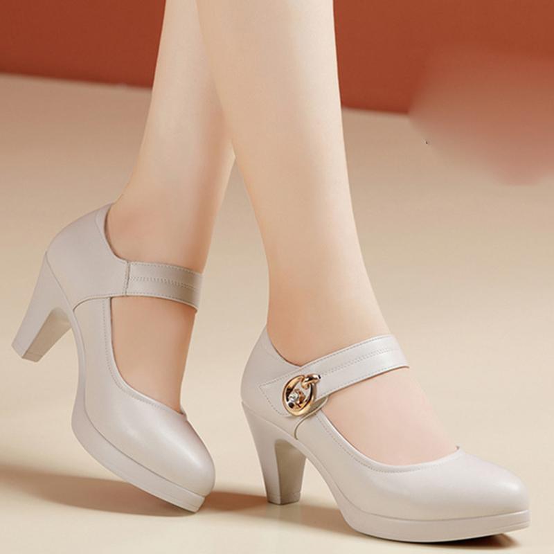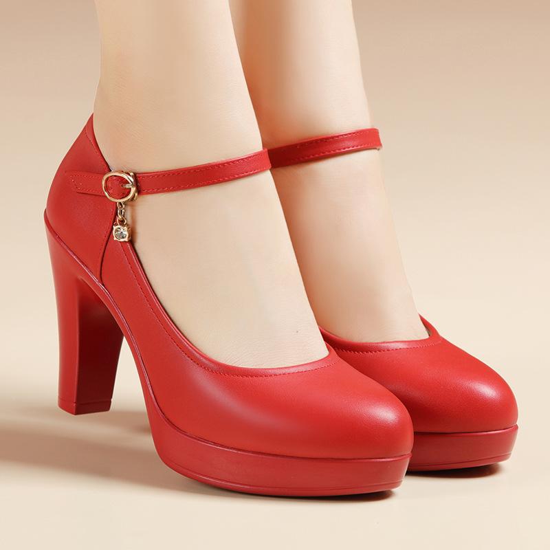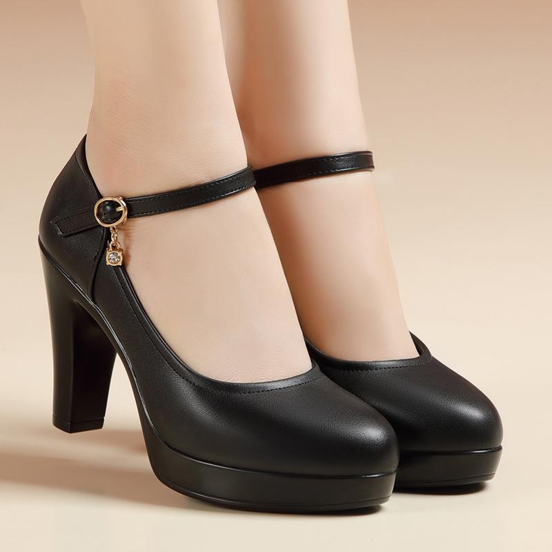 Модные туфли на высоком каблуке на платформе 2024 весна осень новые модные туфли с пряжкой сплошного черного цвета женские туфли из искусственной кожи темперамент элегантная модель