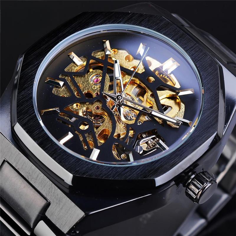 Скелетон механические модные повседневные мужские автоматические механические часы в европейском и американском стиле