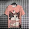 Футболка с забавным рисунком в виде животного на 3D-принте, мужская, с милым рисунком кошки, повседневная, свободная, уличная, короткая, с короткими рукавами
