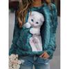 Осенний женский свободный пуловер с принтом животных, длинный рукав, круглый вырез, женский пуловер