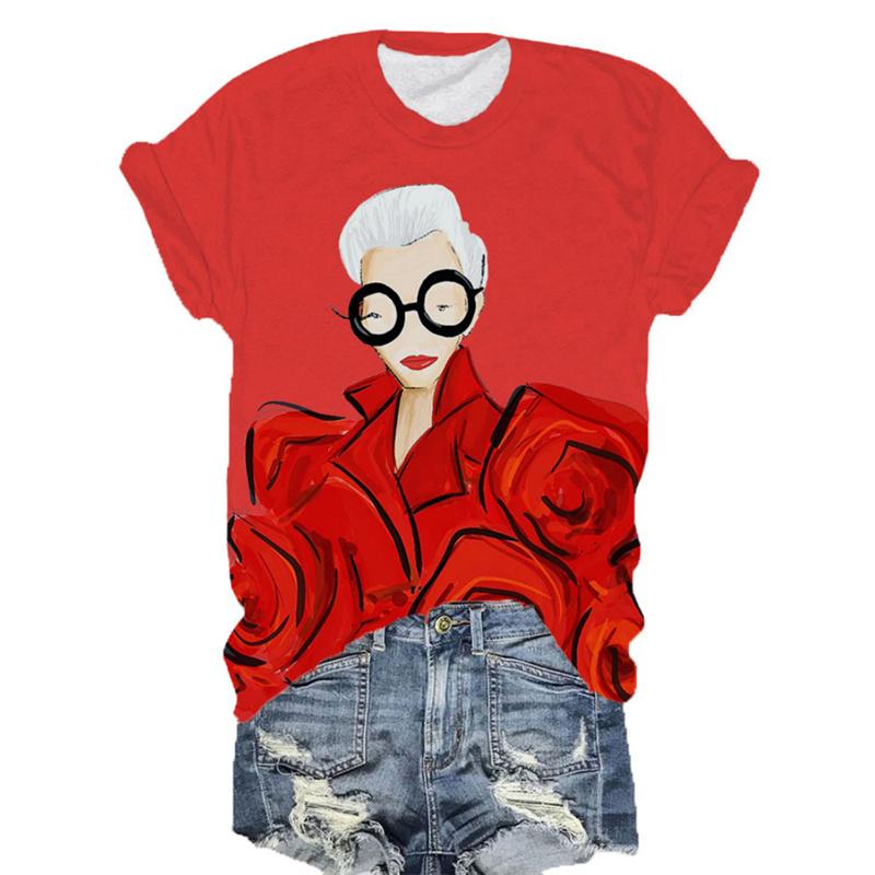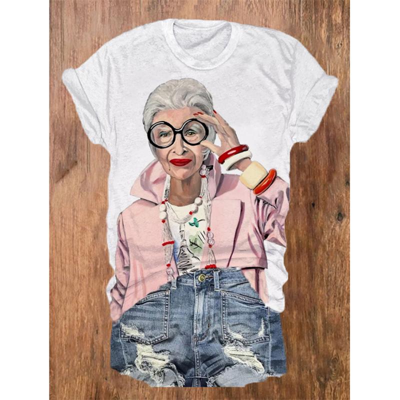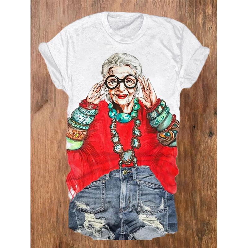 Крутая модная футболка с узором для женщин, футболки с принтом бабушки 3D, летние свободные топы с короткими рукавами, фирменные футболки с круглым вырезом