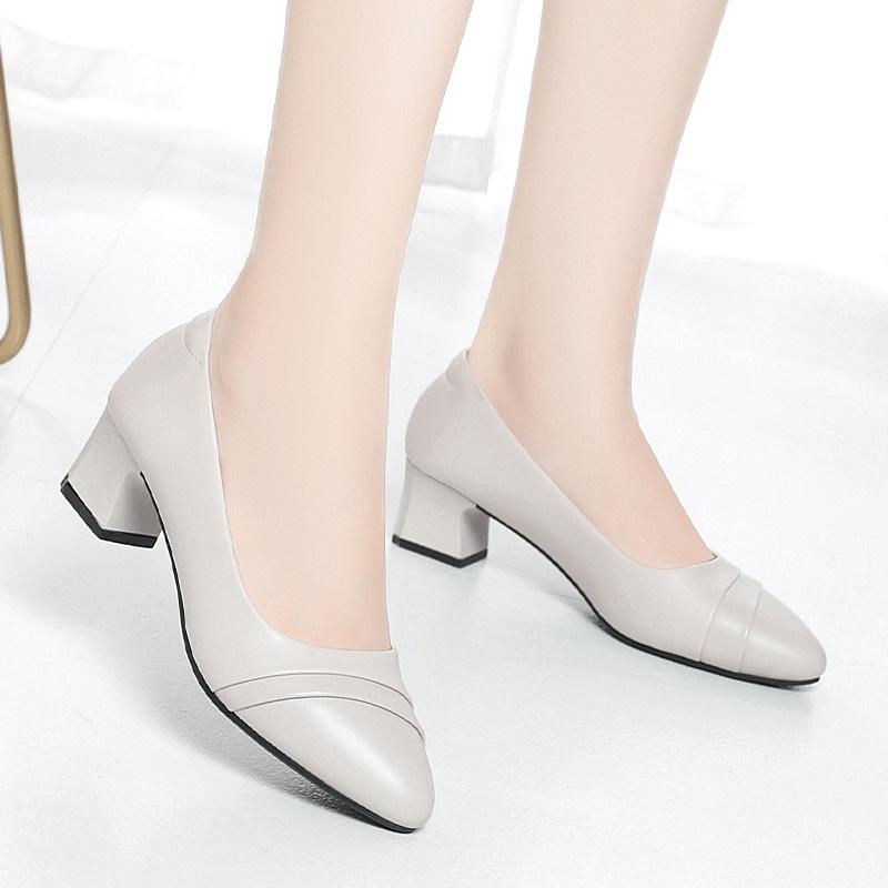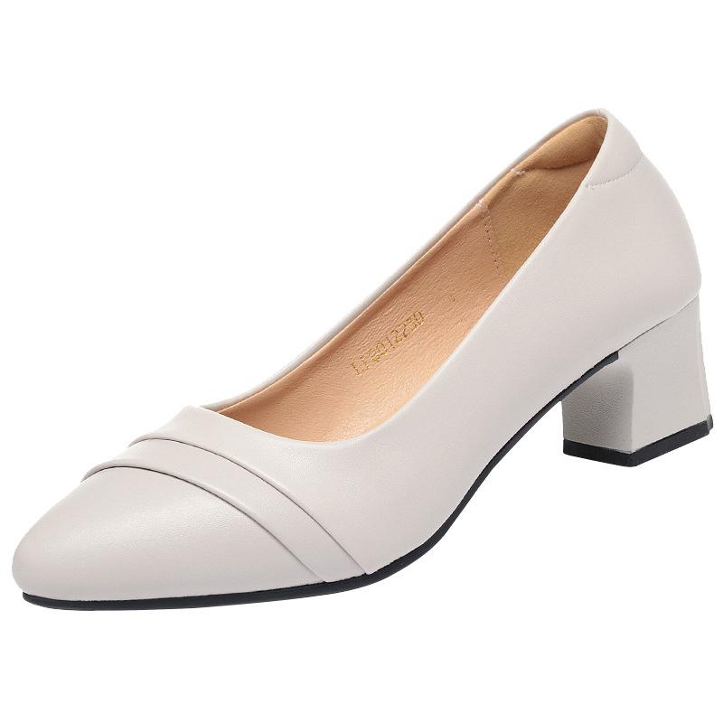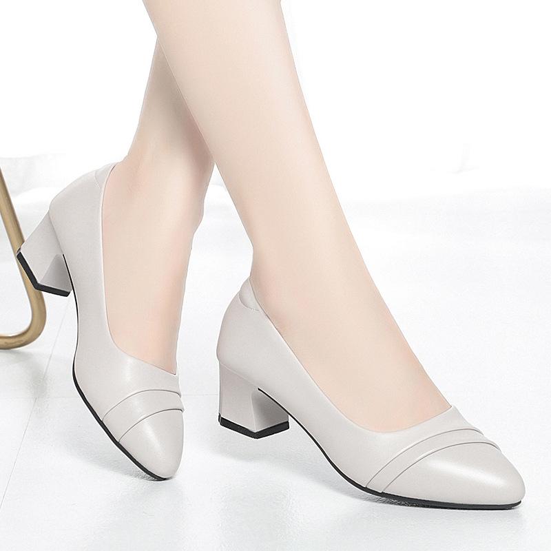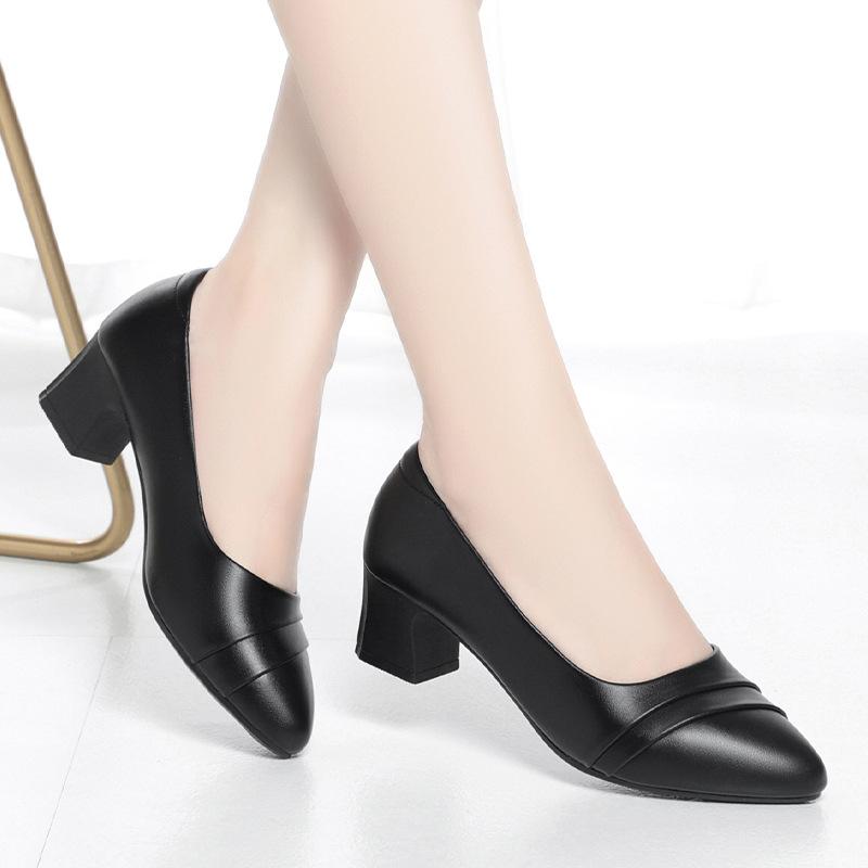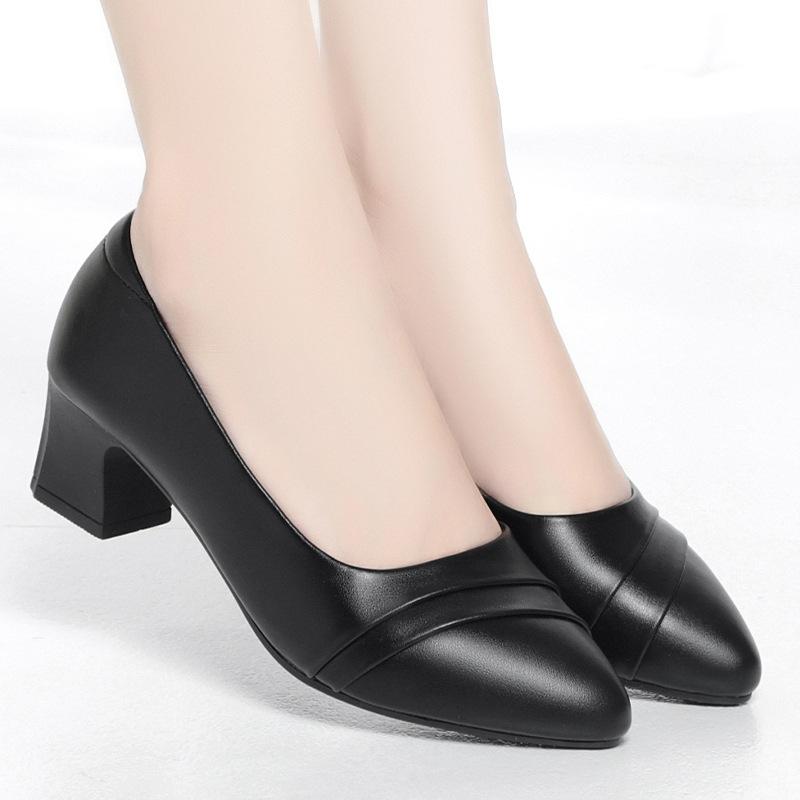 Модные туфли женские на среднем каблуке офисные туфли-лодочки из искусственной кожи, черные, базовые, на квадратном каблуке, весенне-осенние, женские, повседневные, элегантные