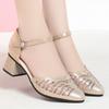 Модные летние женские дышащие сандалии со стразами, на плоской подошве, на толстом каблуке, из искусственной кожи, с полой сеткой и мягкой подошвой, для мам