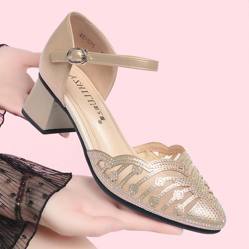 Модные летние женские дышащие сандалии со стразами, на плоской подошве, на толстом каблуке, из искусственной кожи, с полой сеткой и мягкой подошвой, для мам — купить товар онлайн с бесплатной доставкой по всему миру!