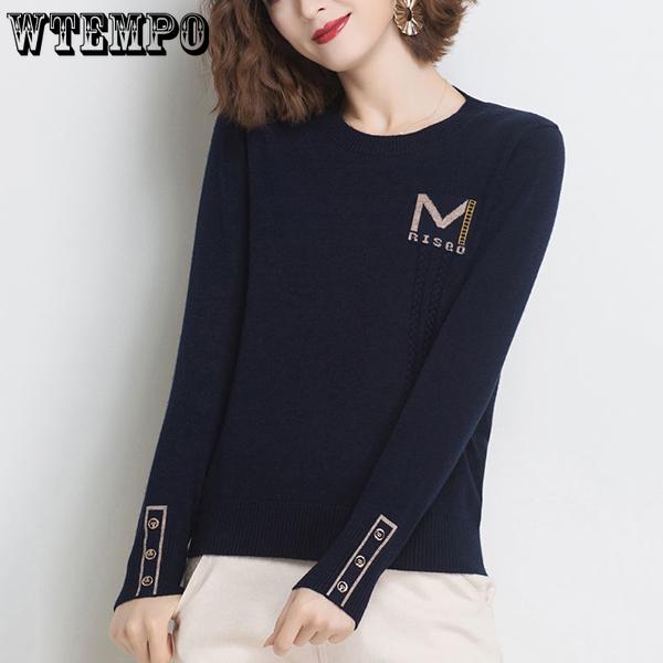 WTEMPO Женские вязаные пуловеры на весну и осень, универсальные однотонные свитера с длинными рукавами, топы с круглым вырезом, джемперы, трикотаж — купить товар онлайн с бесплатной доставкой по всему миру!
