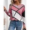 Градиентный полосатый принтованный свитер осень-зима повседневный длинный рукав круглый вырез толстовка клетчатый узор женская одежда