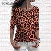 Женские футболки с леопардовым принтом и длинными рукавами, весна-осень, уличная одежда с 3d принтом, женские футболки, свободные повседневные женские топы, большой размер 6XL