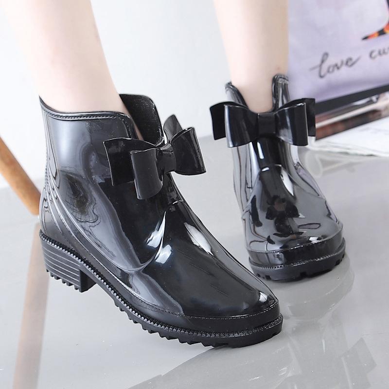 Новые модные женские резиновые сапоги, модные нескользящие женские водные туфли с плоской подошвой, женские бархатные короткие теплые бахилы