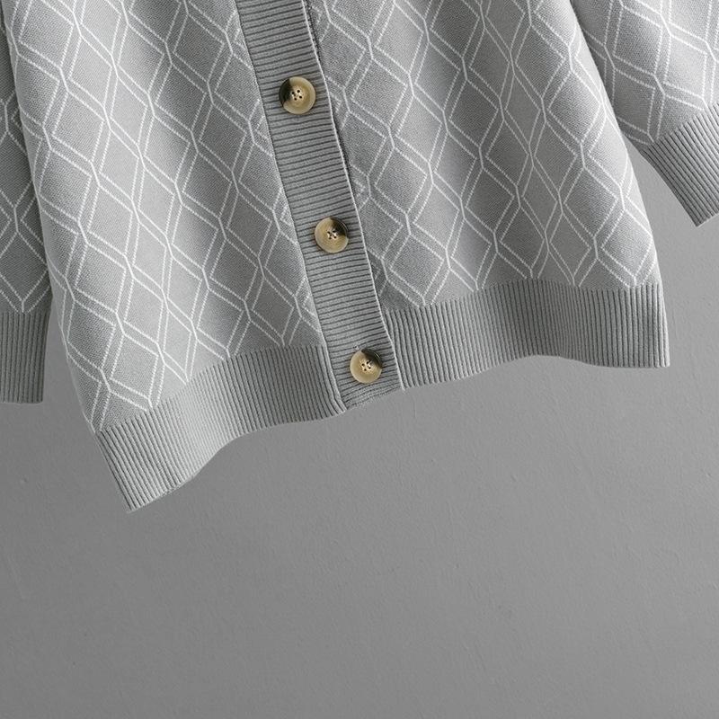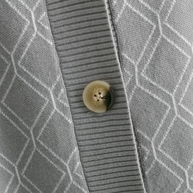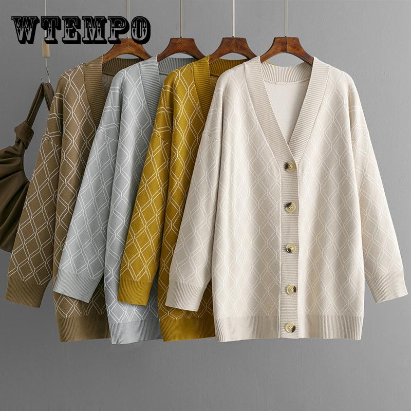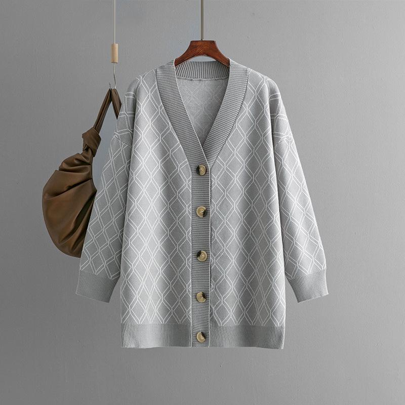 Осенне-зимний кардиган с V-образным вырезом для женщин, повседневный свободный вязаный свитер с ромбовидной сеткой