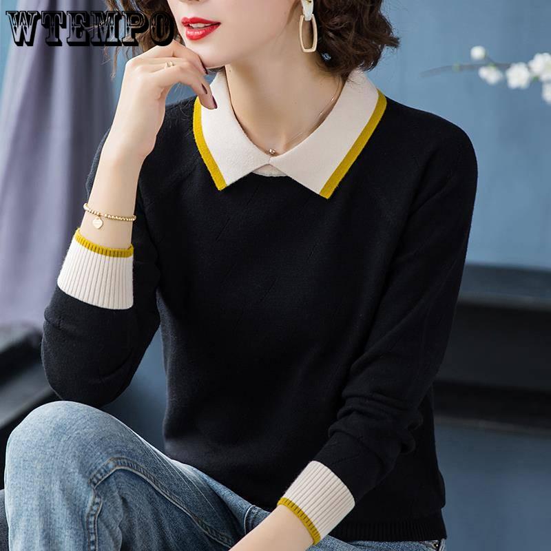 WTEMPO Трикотаж с воротником «Питер Пэн», женские весенне-осенние свободные вязаные пуловеры, повседневные свитера с длинными рукавами